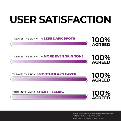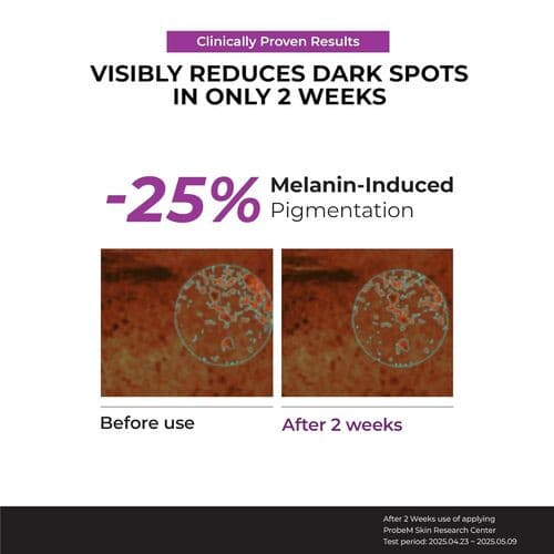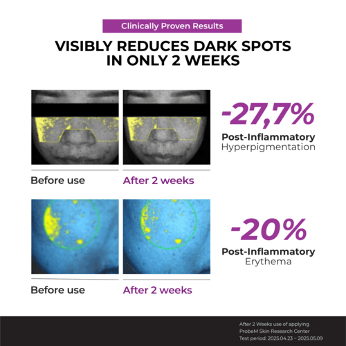 RESULTADOS CLÍNICAMENTE PROBADOS: La fórmula dermatológicamente probada proporciona una reducción del -27,7% en la hiperpigmentación y un -20% en el enrojecimiento después de 2 semanas. 100% de satisfacción del usuario con una piel más suave y clara y un tono de piel más uniforme.